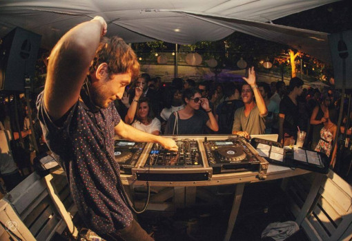 He doesn’t stick to clubs only but finds the way to make people danse outside at the Glazart, on an equiped beach and also at the « electonic naps » of Rosny-sous-bois wich took place sundays in july.